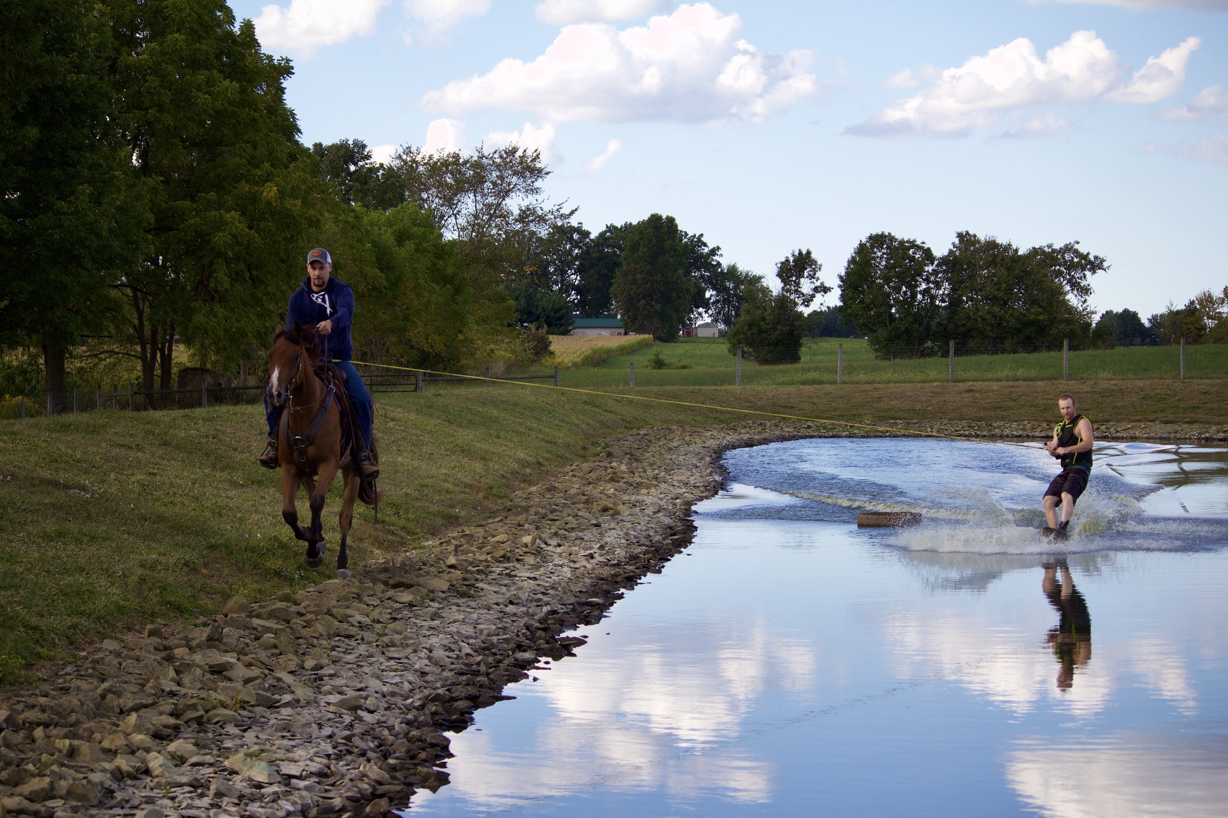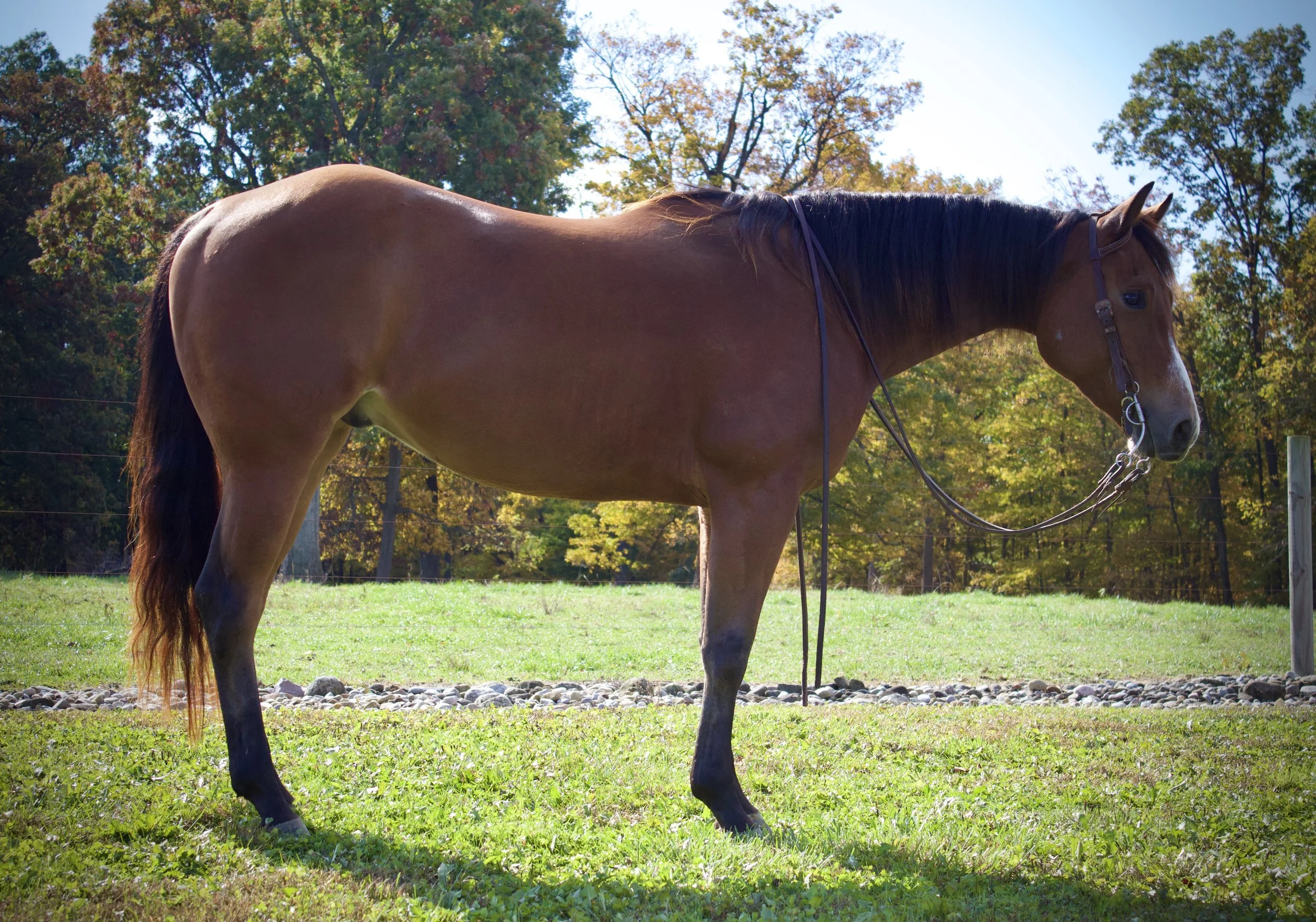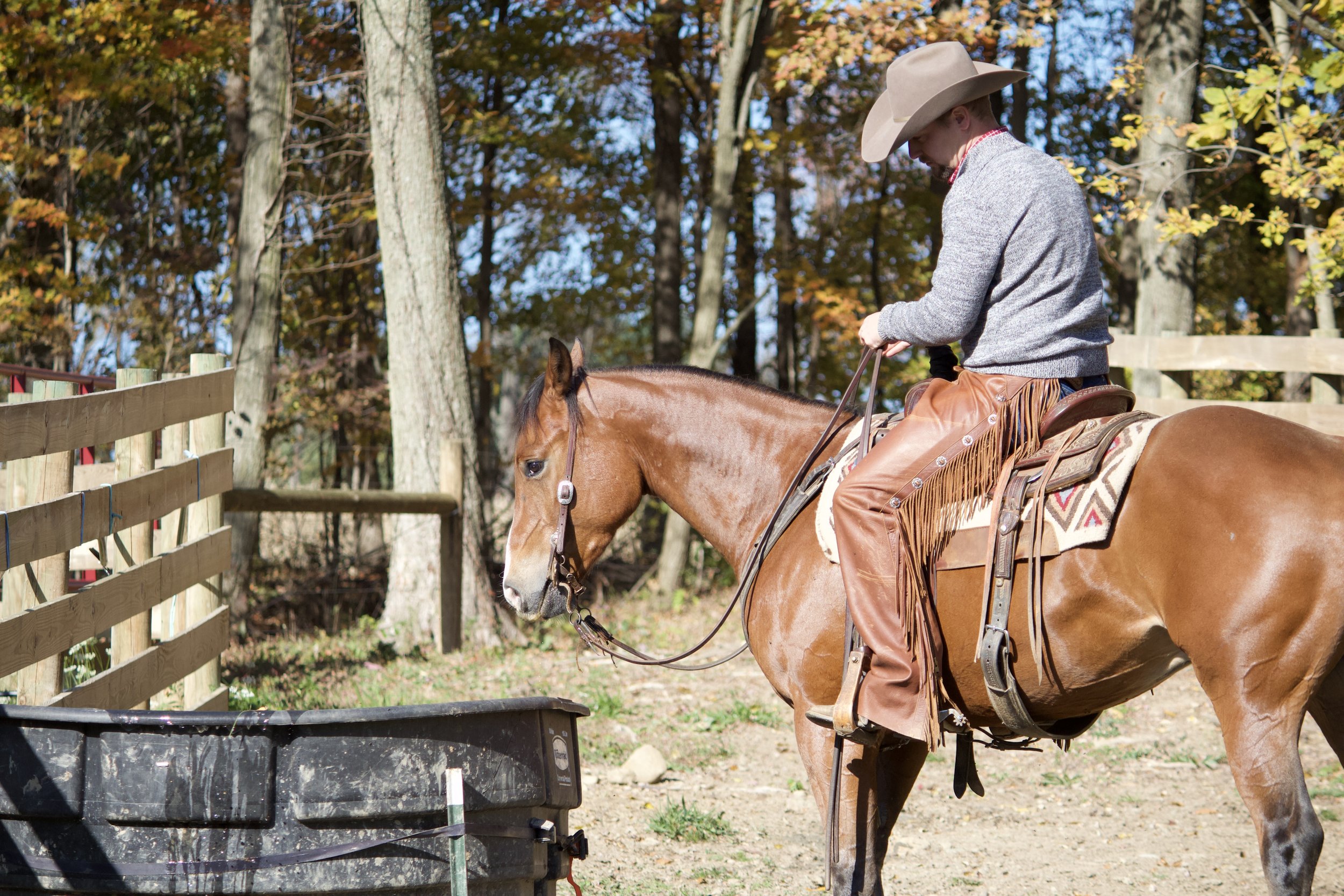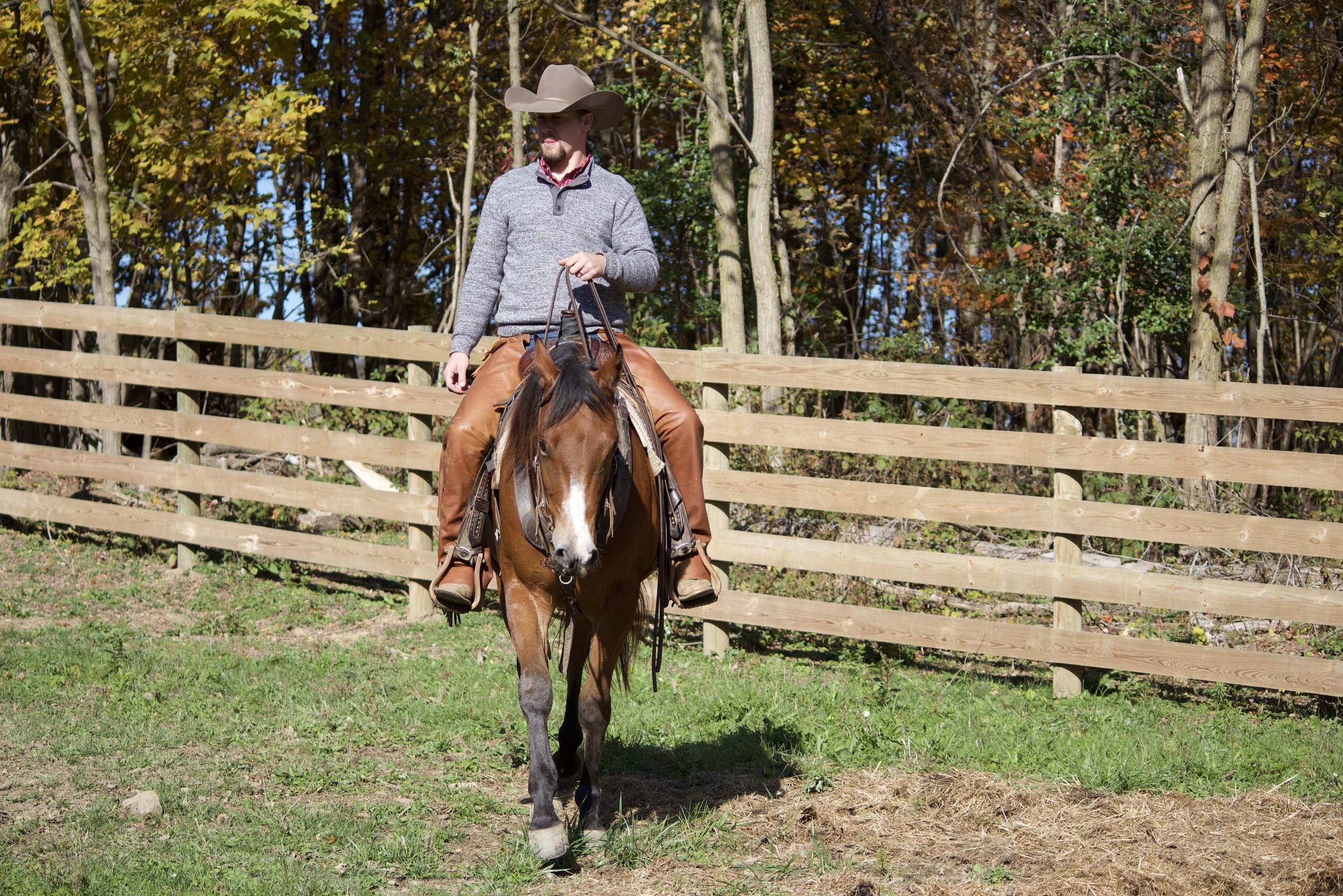Meet Gizmo, the horse with a name that fits him perfectly. Gizmo meaning, a device that gets the job done, is exactly his approach to anything you throw at him. Every time we have introduced something to Gizmo he takes it in stride willing to “get the job done”. From moving cattle, dragging and tracking our roping dummy, pulling wake-boarders down the pond, and lots of calm cool trail rides Gizmo has always been up for the task. It takes a special horse to work in the arena and promptly step off to let your 6 and 3 your old kids enjoy him too. Trail riding Gizmo is a breeze. Whether crossing creeks, being on the road, or seeing deer and other wildlife he’s always calm making you forget you are riding a 3 year old. Used to pony our kids trail riding his temperament and mental maturity truly don’t match his age. Gizmo will go down as one of the calmest 3 year olds we’ve had. This horse has had a fantastic start to his riding career and is going to make someone a dependable and honest mount for a long time to come. Give us a call, you won’t be disappointed with this guy. Contact Chad Wenger at C and C Horsemanship, (330) 473-5073.